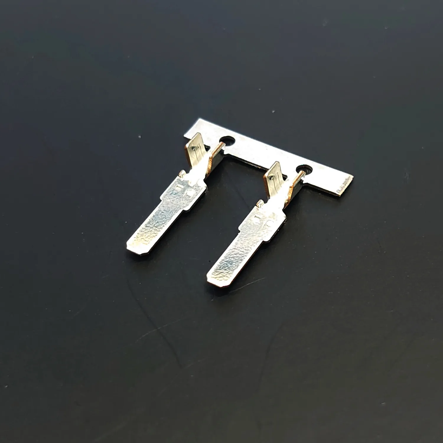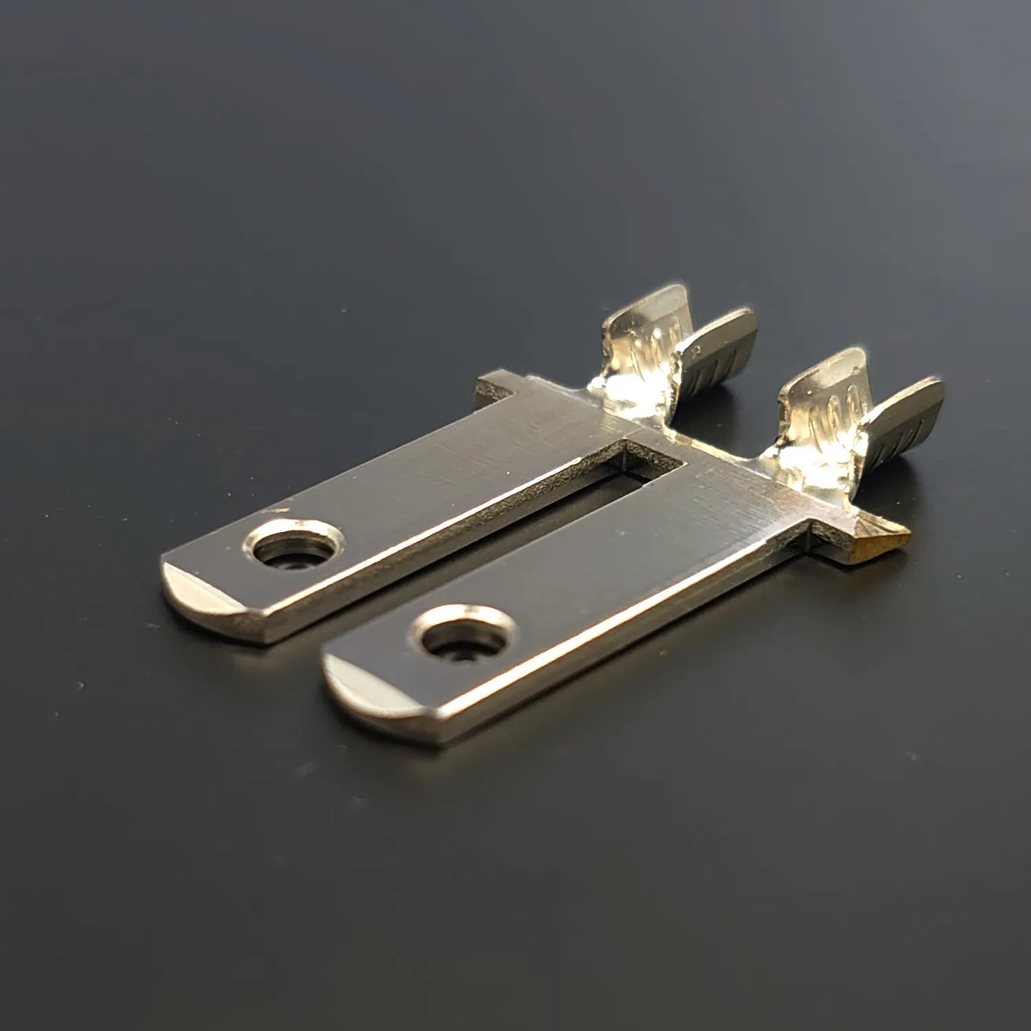ピンブレード端子(またはブレード端子)は、先端の接触部が平たい板状(ブレード状)、あるいはピン状になっている圧着端子です。